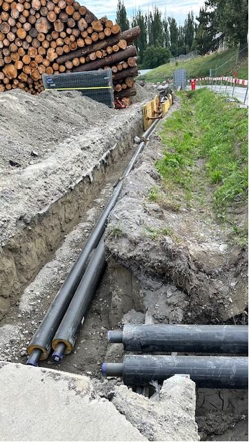 En 2024, le développement du réseau de chauffage à distance (CAD) en direction de la ville de Sion s’est poursuivi conformément à la planification. Grâce à ces travaux, la consommation thermique du réseau a atteint 28’000 MWh, soit plus du double de celle enregistrée en 2023 (12’500 MWh).